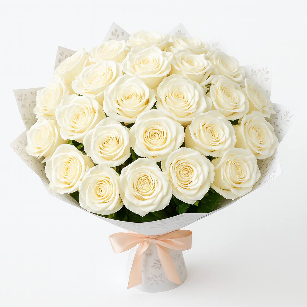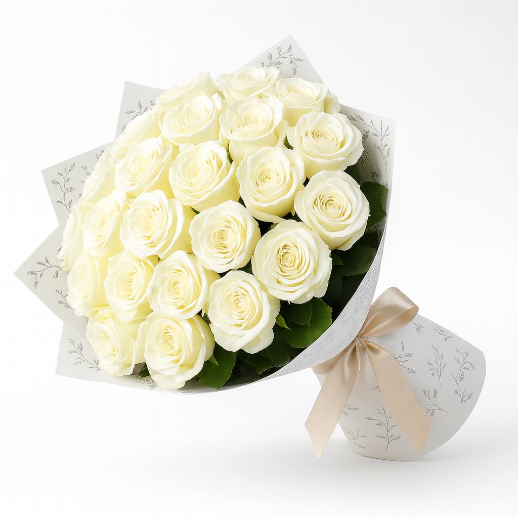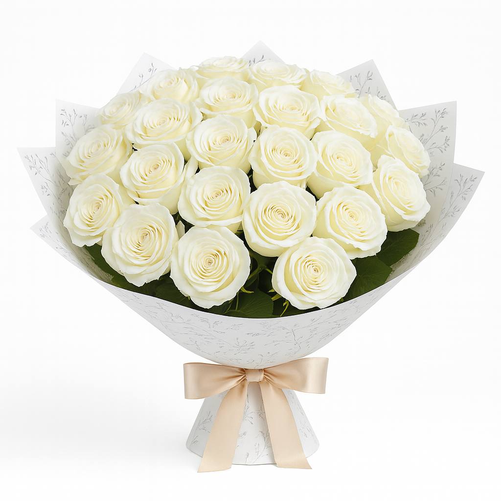 20’li Beyaz Güller Buketi, saflığın ve zarafetin simgesi olan bembeyaz güllerle özenle hazırlanmış şık bir aranjmandır. Özel anlarınıza masumiyet ve asalet katarken, hiç solmayan güzelliğiyle kalıcı bir iz bırakır.
