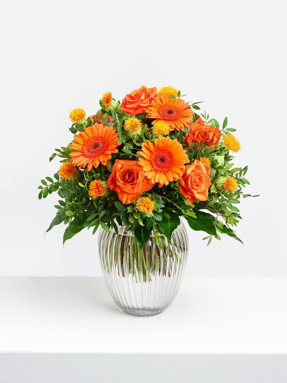 Güneş Uğru, enerjisi ve neşesiyle güneşi getiren bir çiçek buketi! Canlı sarı ve turuncu tonlardaki çiçeklerle hazırlanan bu özel tasarım, her anı ısıtıyor.