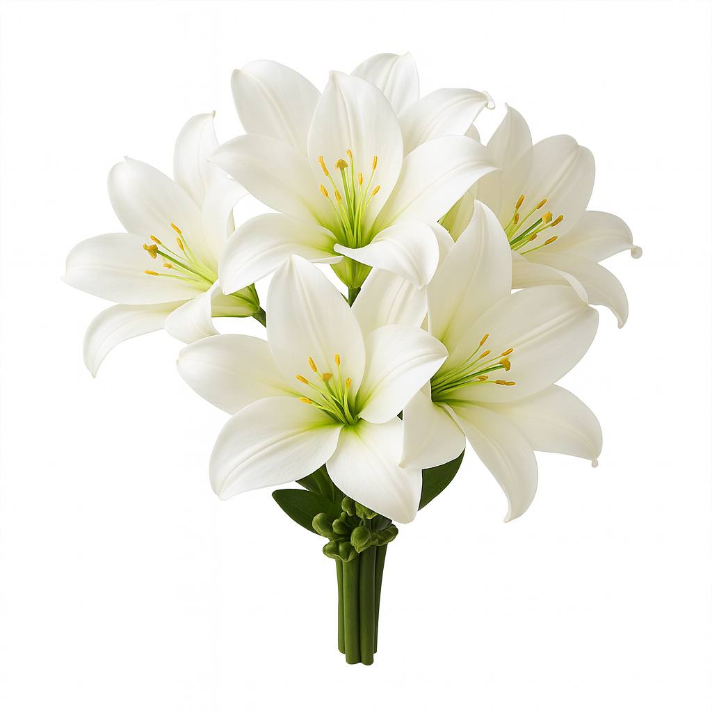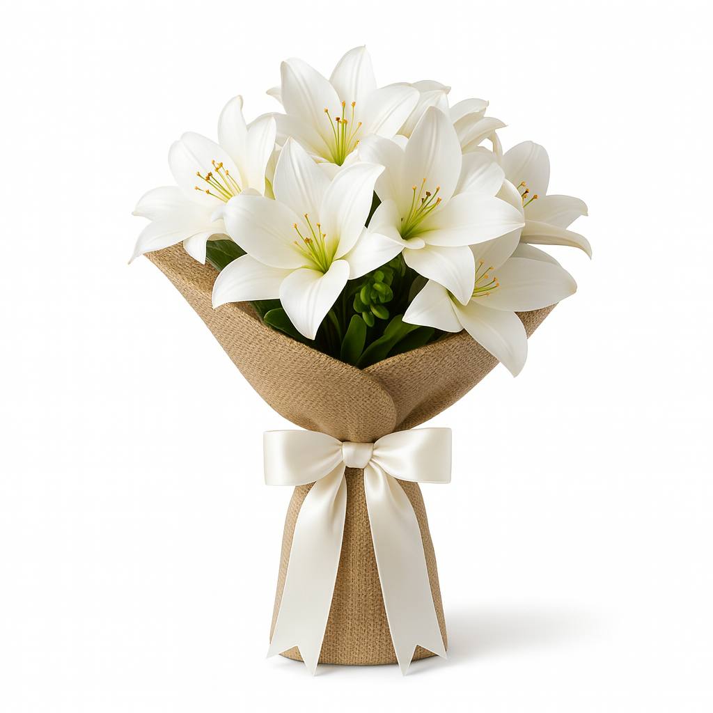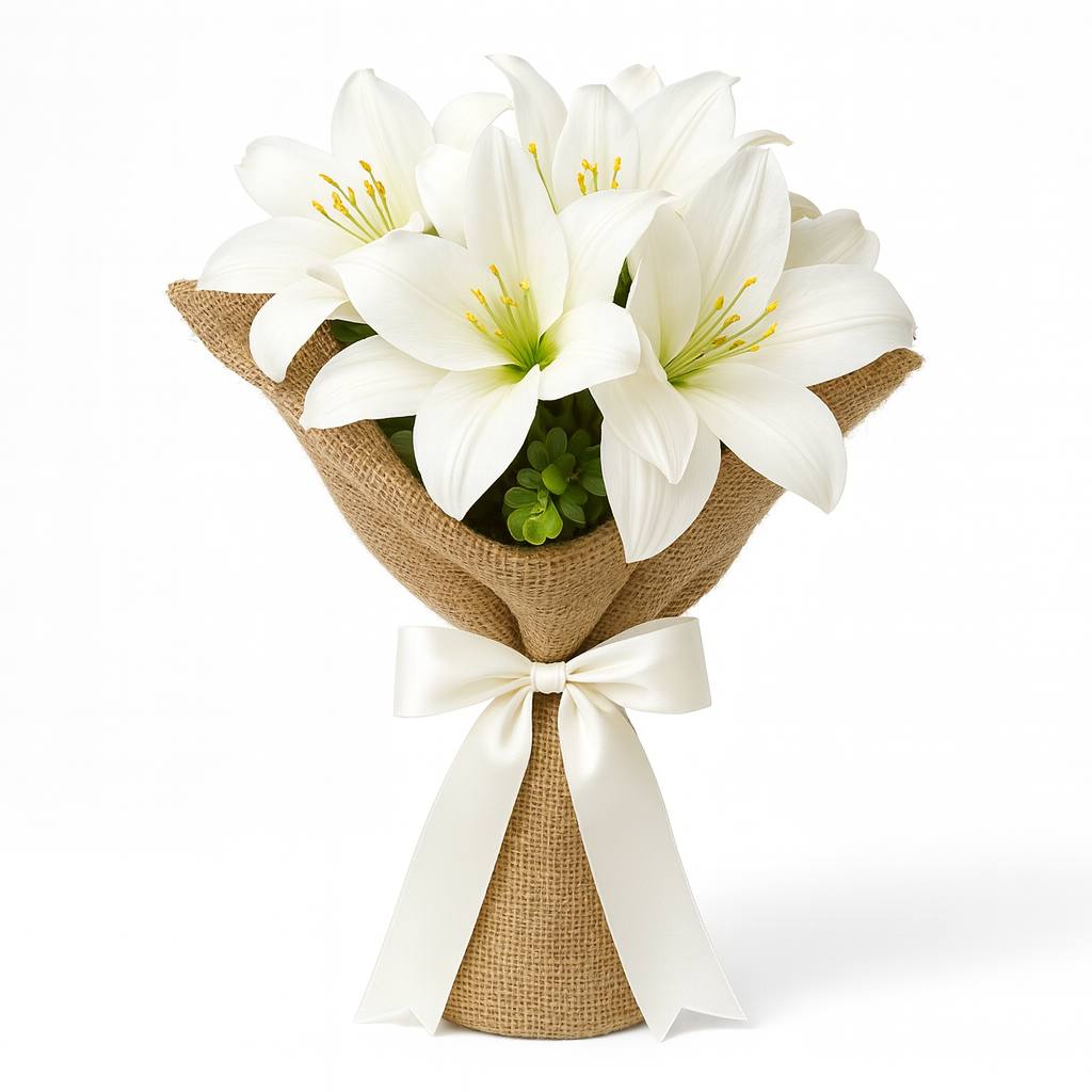 Zarif lilyum çiçeklerinin oluşturduğu bu buket, saflığın ve asaletin simgesidir. Gösterişli beyaz çiçekleri ve yemyeşil yapraklarıyla her özel anınıza şıklık katarken, kalıcı güzelliğiyle daima taze kalır.